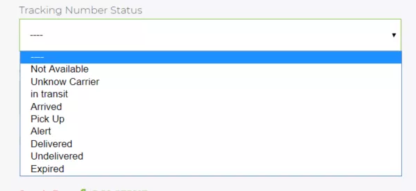 *Tracking Number status: Để lọc trạng thái của Tracking number. Ví dụ như đơn nào đang in transit, đơn nào đã giao hàng thành công hay trạnh thái Pick-up để nhắc nhở khách để ý đơn hàng của mình: