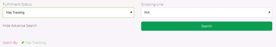 Đầu tiên, nếu bạn đã đọc bài ” Quản lý order” thì sẽ không còn xa lạ với giao diện dưới đây : Bạn bấm vào Advance Search ->> Tìm mục Fulfillment Status–> chọn Has Tracking –> Bấm Search