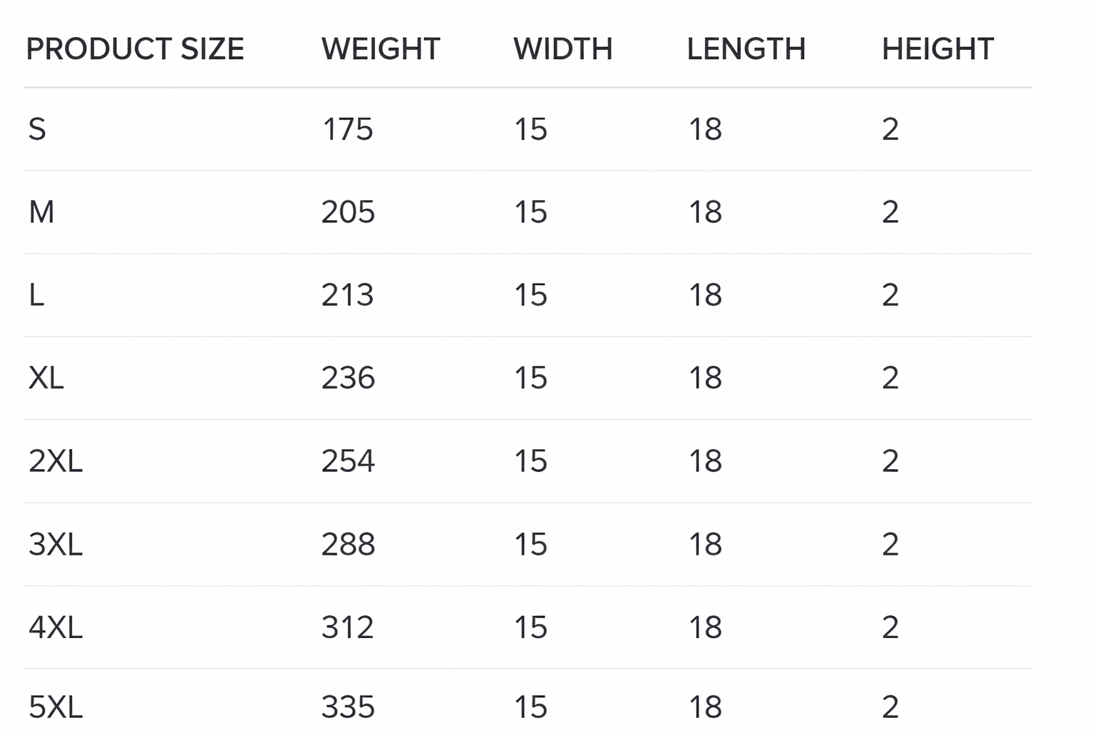 Sizes: S, M, L, XL, 2XL, 3XL, 4XL, 5XL