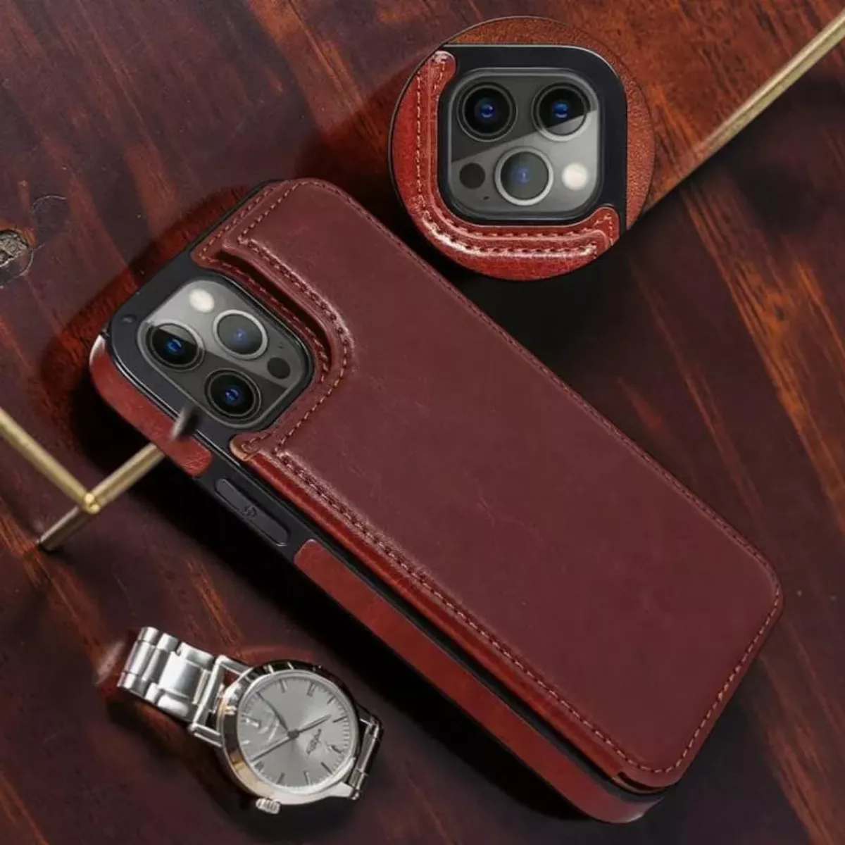 View Base cost hereThe Leather Wallet Card Phone Case combines everyday protection with practical functionality and a sleek, modern look. Crafted from high-quality leather, this case offers a premium feel while providing reliable protection against scratches, drops, and daily wear. The built-in card holder allows you to conveniently store essential cards such as IDs, credit cards, or transit cards, making it perfect for on-the-go use without carrying a bulky wallet.